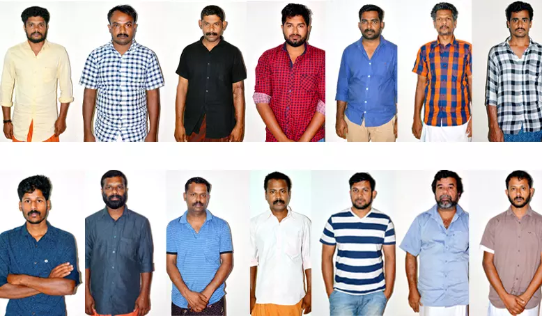 പ്രതികള് ഇവര്; ഒന്നാം പ്രതി - ഹുസൈൻ മേച്ചേരിയിൽ (59 വയസ് ) പാക്കുളം സ്വദേശി, രണ്ടാം പ്രതി - കിളയിൽ മരയ്ക്കാർ (41 വയസ് ) മുക്കാലി സ്വദേശി, മൂന്നാം പ്രതി -ഷംസുദ്ദീൻ പൊതുവച്ചോല (41 വയസ് ) മുക്കാലി സ്വദേശി, അഞ്ചാം പ്രതി - ടി. രാധാകൃഷ്ണൻ, മുക്കാലി സ്വദേശി, ആറാം പ്രതി -അബൂബക്കർ ( 39 വയസ് ) - പൊതുവച്ചോല സ്വദേശി, ഏഴാം പ്രതി -സിദ്ദീഖ് (46 വയസ് ) മുക്കാലി സ്വദേശി, എട്ടാംപ്രതി - ഉബൈദ് (33 വയസ് ) മുക്കാലി സ്വദേശി, ഒൻപതാം പ്രതി -നജീബ് (41 വയസ്) മുക്കാലി സ്വദേശി, പത്താം പ്രതി -ജൈജുമോൻ (52) മുക്കാലി സ്വദേശി, പന്ത്രണ്ടാം പ്രതി -പി. സജീവ് (38 ) കള്ളമല സ്വദേശി, പതിമൂന്നാം പ്രതി - സതീഷ് (43) മുക്കാലി സ്വദേശി, പതിനാലാം പ്രതി -ഹരീഷ് (42) മുക്കാലി സ്വദേശി, പതിനഞ്ചാം പ്രതി -ബിജു (45) മുക്കാലി സ്വദേശി, പതിനാറാം പ്രതി -മുനീർ ( 36 ) മുക്കാലി സ്വദേശി.