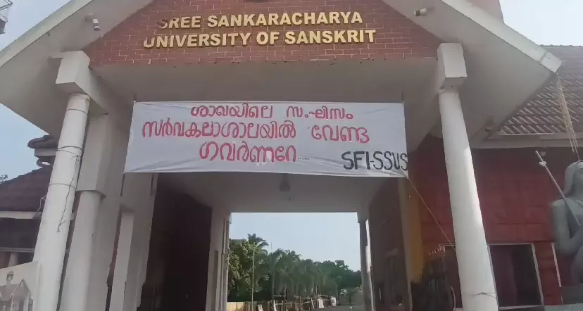 'ശാഖയിലെ സംഘിസം സർവകലാശാലയിൽ വേണ്ട ഗവർണറേ'; ആരിഫ് മുഹമ്മദ് ഖാനെതിരെ കാലടി സര്വകലാശാലയില് ബാനര്