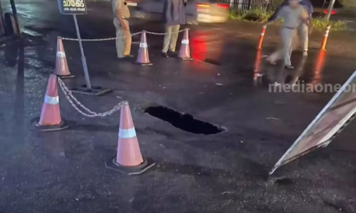 ഇന്നലെ രാത്രി 9 മണിയോടെയാണ് പെട്ടെന്ന് റോഡ് ഇടിഞ്ഞ് ആഴത്തിലുള്ള കുഴി പ്രത്യക്ഷപ്പെട്ടത്