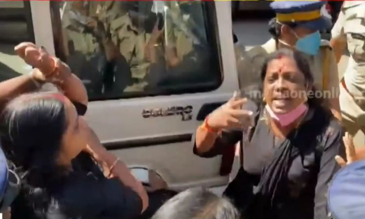|മഹിളാമോർച്ച പ്രവർത്തകർ കറുത്ത സാരി ധരിച്ചെത്തി ക്ലിഫ് ഹൗസിനുമുന്നിൽ പ്രതിഷേധിച്ചു