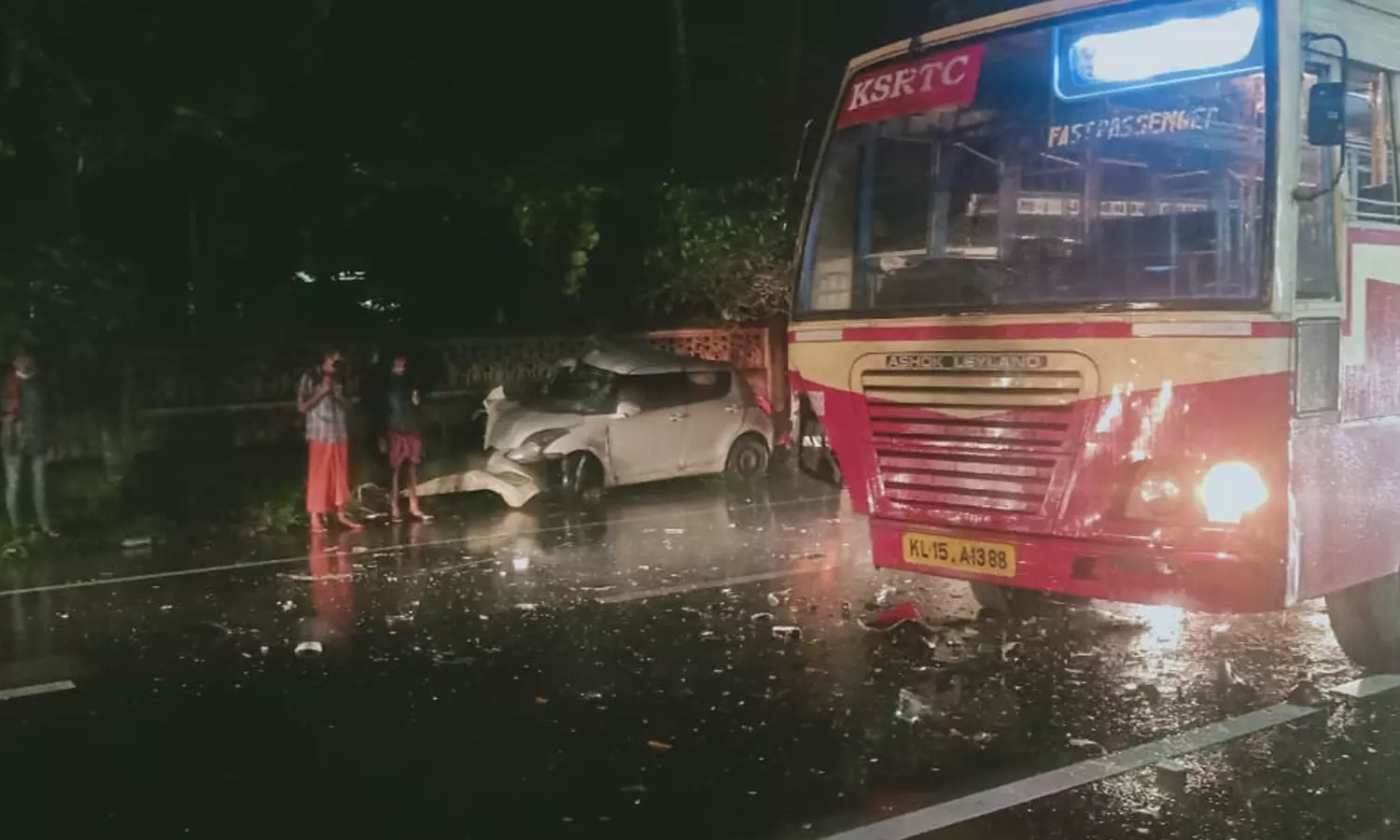 പന്തളത്ത് കെ.എസ്.ആര്.ടി.സി ബസും കാറും കൂട്ടിയിടിച്ച് അഞ്ചുപേർക്ക് പരിക്ക്