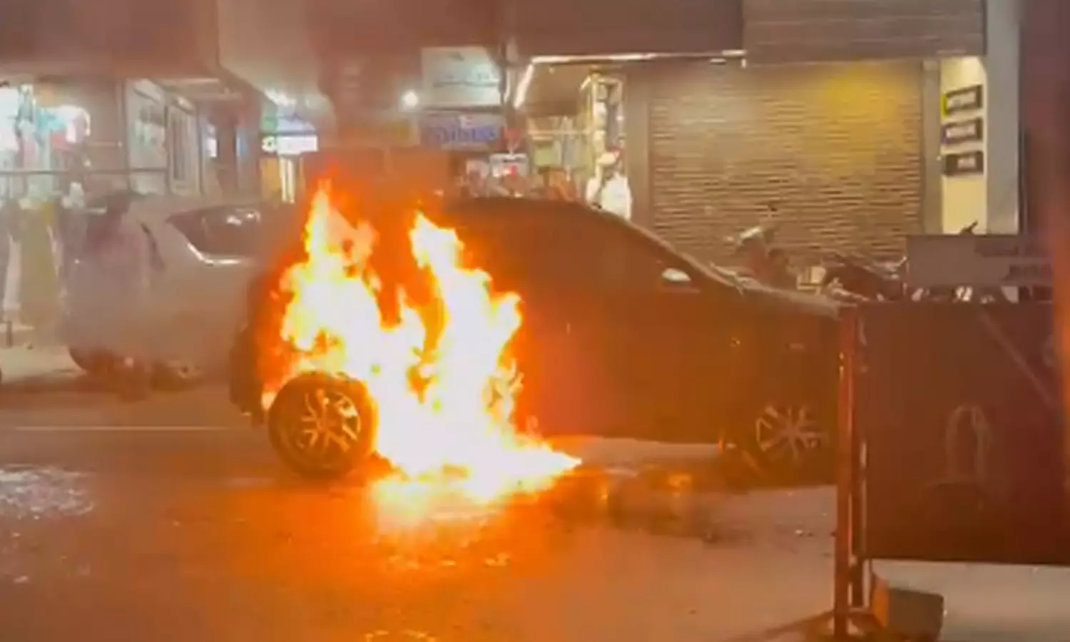 തെരഞ്ഞെടുപ്പ് പ്രചാരണത്തിനിടെ പടക്കം വീണ് കാറിന് തീപിടിച്ചു