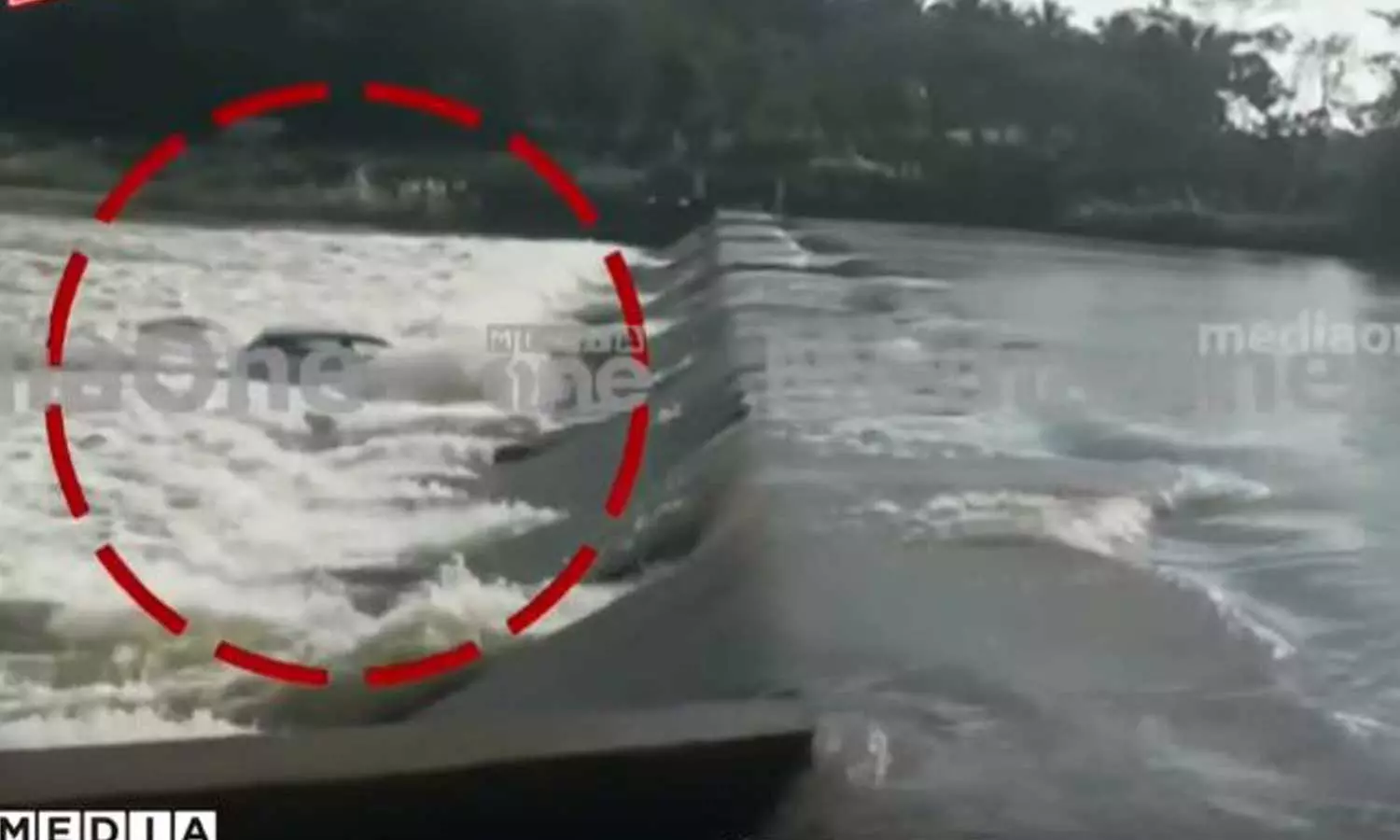 |കാർ ചെക്ക് ഡാമിന് മുകളിലെ റോഡിന് നടുവിൽ എത്തിയപ്പോൾ പുഴയിൽ ജലനിരപ്പ് ഉയരുകയായിരുന്നു