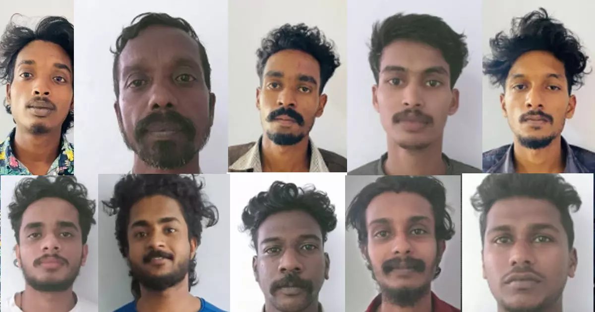 പരാതിയെ തുടർന്ന് തൃക്കൊടിത്താനം പൊലീസ് കേസ് രജിസ്റ്റർ ചെയ്യുകയും ജില്ലാ പൊലീസ് മേധാവി കെ. കാർത്തിക്കിന്റെ നേതൃത്വത്തിലുള്ള അന്വേഷണസംഘം നടത്തിയ തിരച്ചിലിനൊടുവിൽ 10 പേരെ വിവിധ സ്ഥലങ്ങളിൽ നിന്നായി പിടികൂടുകയുമായിരുന്നു. തൃക്കൊടിത്താനം സ്റ്റേഷൻ എസ്.എച്ച്.ഓ അനൂപ് ജി, എസ് ഐ അഖിൽദേവ് എന്നിവരും അന്വേഷണ സംഘത്തിൽ ഉണ്ടായിരുന്നു. കോടതിയിൽ ഹാജരാക്കിയ 10 പേരെയും റിമാൻഡ് ചെയ്തു.