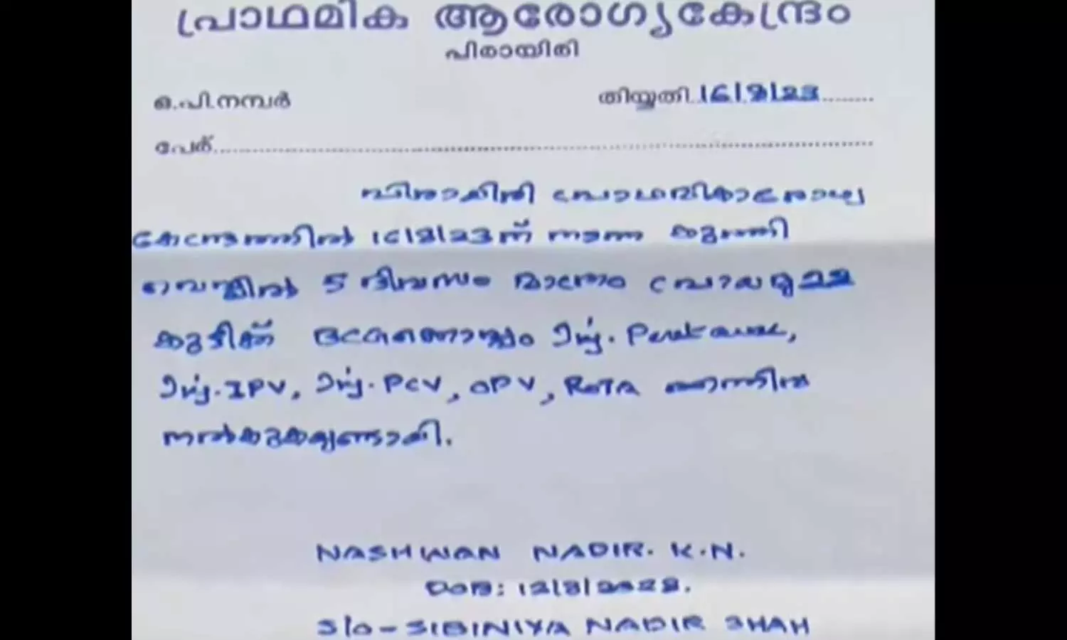 പാലക്കാട്ട് അഞ്ചു ദിവസം പ്രായമുള്ള കുഞ്ഞിന് അമിത വാക്സിൻ നൽകിയതായി പരാതി