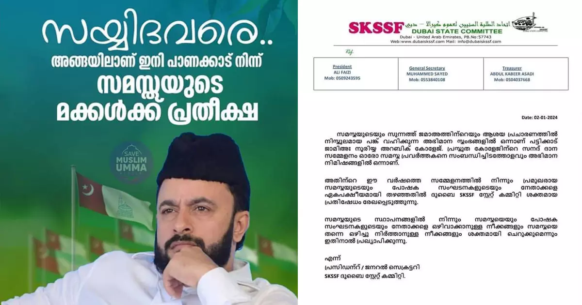 സമസ്തയിലെ ഒരു വിഭാഗം നടത്തുന്ന ലീഗ് വിരുദ്ധ നീക്കമായാണ് സാദിഖലി തങ്ങൾക്കൊപ്പം നിൽക്കുന്നവർ ഇതിനെയെല്ലാം കണ്ടത്. ഇതിന് പിറകേയാണ് ജാമിഅ സമ്മേളനത്തിലെ വെട്ടിനിരത്തലുണ്ടായത്. നാട്ടിലും വിദേശത്തുമുള്ള സമസ്തയുടെ ഏതാനും ഘടകങ്ങൾ വെട്ടിനരത്തലിനെതിരെ വാർത്താക്കുറിപ്പിറക്കി. തങ്ങൻമാർ പൂർവിക പാത കൈവിടരുതെന്ന പരോക്ഷ വിമർശനം ജാമിഅ വേദിയിൽ സമസ്ത മുശാവറ അംഗം മുസ്തഫൽ ഫൈസി നടത്തുകയും ചെയ്തു. ഒരു വിഭാഗം സമസ്ത നേതാക്കളെ സമ്മേളനത്തിൽ നിന്ന് ഒഴിവാക്കിയതിലുള്ള പ്രതിഷേധമറിയിച്ച് ഏതാനും ചിലർ ചേർന്ന് സാദിഖലി തങ്ങൾക്ക് കത്ത് നൽകി. സാമൂഹ്യമാധ്യമങ്ങളിൽ സാദിഖലി തങ്ങൾക്കെതിരെ നിരവധി കുറിപ്പുകളും പ്രചരിക്കുന്നുണ്ട്. സമ്മേളനത്തിൽ നിന്ന് ഒഴിവാക്കപ്പെട്ടവർക്കെതിരെയുള്ള കുറിപ്പുകൾ മറു വിഭാഗവും പ്രചരിപ്പിക്കുന്നുണ്ട്. സമസ്ത നേതാക്കളെ ഒഴിവാക്കിയതിനെ കുറിച്ച് മാധ്യമ പ്രവർത്തകർ ചോദിച്ചപ്പോൾ തനിക്ക് അതെക്കുറിച്ച് അറിയില്ലെന്നാണ് സാദിഖലി തങ്ങൾ പ്രതികരിച്ചത്. അതേസമയം, സമസ്ത നേതാക്കളാരും വിഷയത്തിൽ ഔദ്യോഗികമായി പ്രതികരിച്ചിട്ടില്ല.