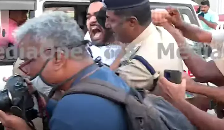 കൊച്ചിയില് യൂത്ത് കോണ്ഗ്രസിനു നേരെ കരിങ്കൊടി കാണിക്കുന്നു