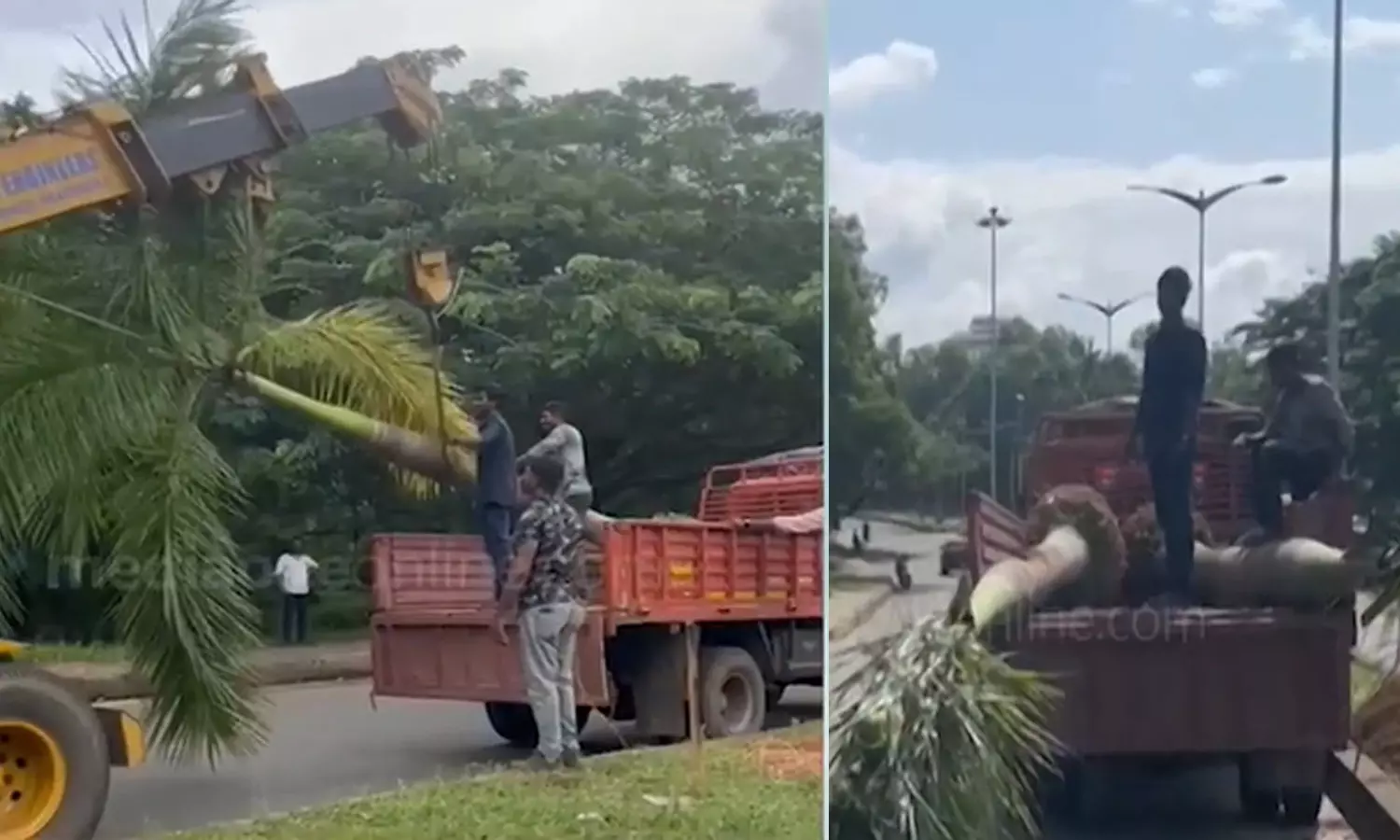 മെട്രോ റെയിൽ നിർമാണം; കാക്കനാട് ഇൻഫോപാർക്ക് ഐടി റോഡിലെ പനകൾ പറിച്ചുമാറ്റി തുടങ്ങി