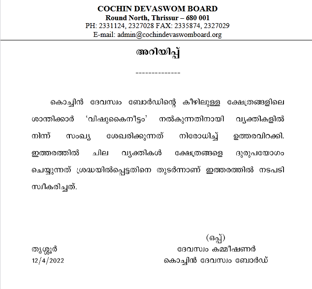 വിവാദത്തിന് തിരി കൊളുത്തി സുരേഷ് ഗോപിയുടെ വിഷുക്കൈനീട്ടം; പണം സ്വീകരിക്കരുതെന്ന് മേല്ശാന്തിമാര്ക്ക് നിര്ദേശം