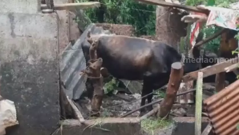 പേയിളകിയ പശുക്കൾ അക്രമാസക്തരായി. രണ്ട് കയറിൽ കെട്ടിയിട്ടിരുന്നെങ്കിലും തൊഴുത്ത് മുഴുവൻ തകർത്തു