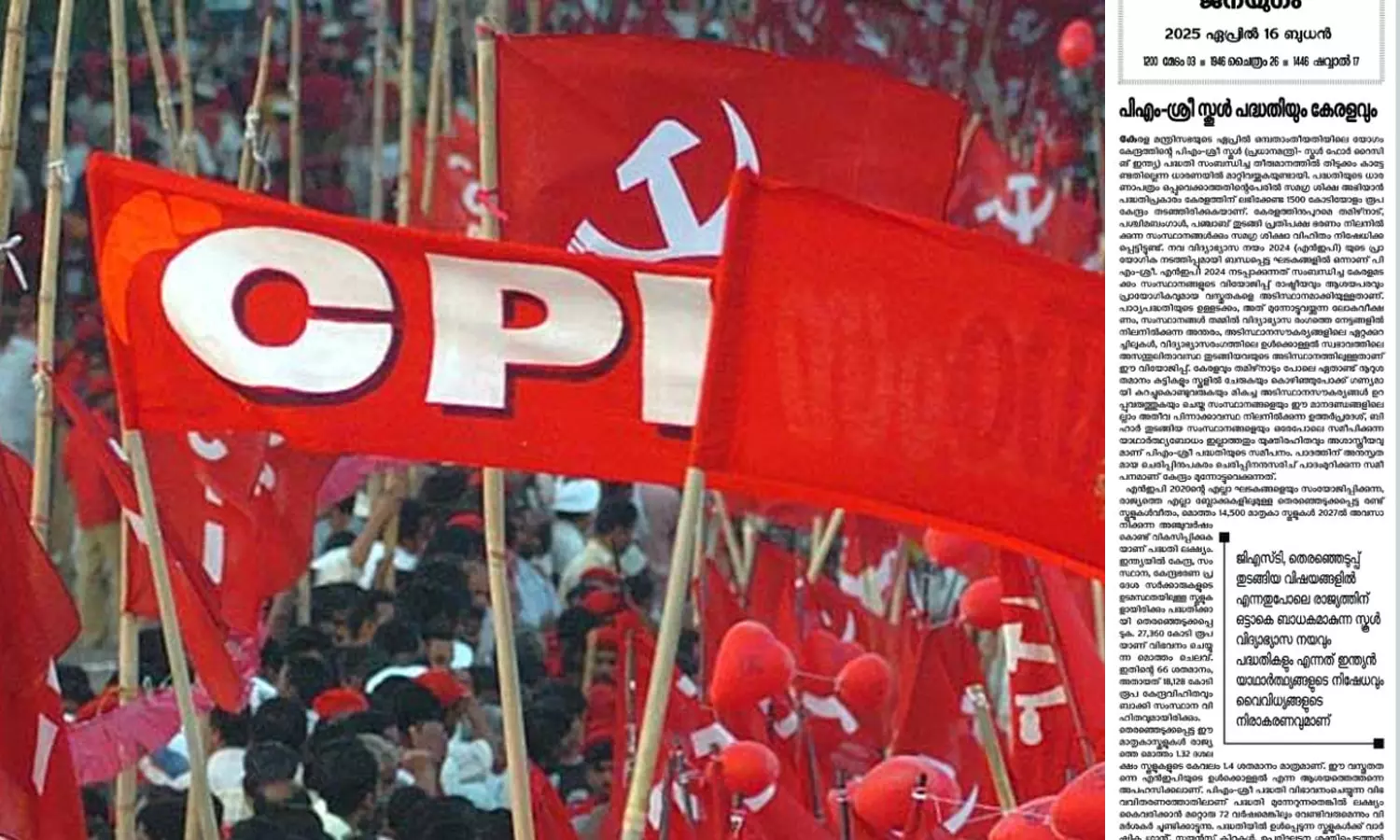 പദ്ധതിയിൽ ചേരാതെ അർഹമായ അവകാശങ്ങൾ കണക്ക് പറഞ്ഞു വാങ്ങണം. കേരളം ഇതുവരെ വിദ്യാഭ്യാസ മേഖലയിൽ കൈവരിച്ച നേട്ടങ്ങൾ ഇല്ലാതാക്കാൻ നീക്കമെന്നും കേന്ദ്രസമ്മർദ്ദങ്ങൾക്ക് വഴങ്ങരുതെന്നും മുഖപ്രസംഗത്തിൽ പറയുന്നു. 'പ എം ശ്രീ'യിൽ ചേരാൻ വിദ്യാഭ്യാസ വകുപ്പ് തിടുക്കം കാട്ടുമ്പോഴാണ് സിപിഐ നിലപാടിൽ ഉറച്ചു നിൽക്കുന്നത്.