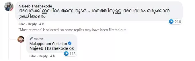 'മലപ്പുറത്തെ കുട്ടികള് ഡബിള് സ്ട്രോങ്ങാ, പക്ഷേ പ്ലസ് ടു പഠിക്കാന് സീറ്റില്ല': കലക്ടറുടെ അഭിനന്ദന പോസ്റ്റിന് പൊങ്കാല, കമന്റ് ഓഫാക്കി കലക്ടര്, വിവാദമായതോടെ കമന്റിന് അനുവാദം