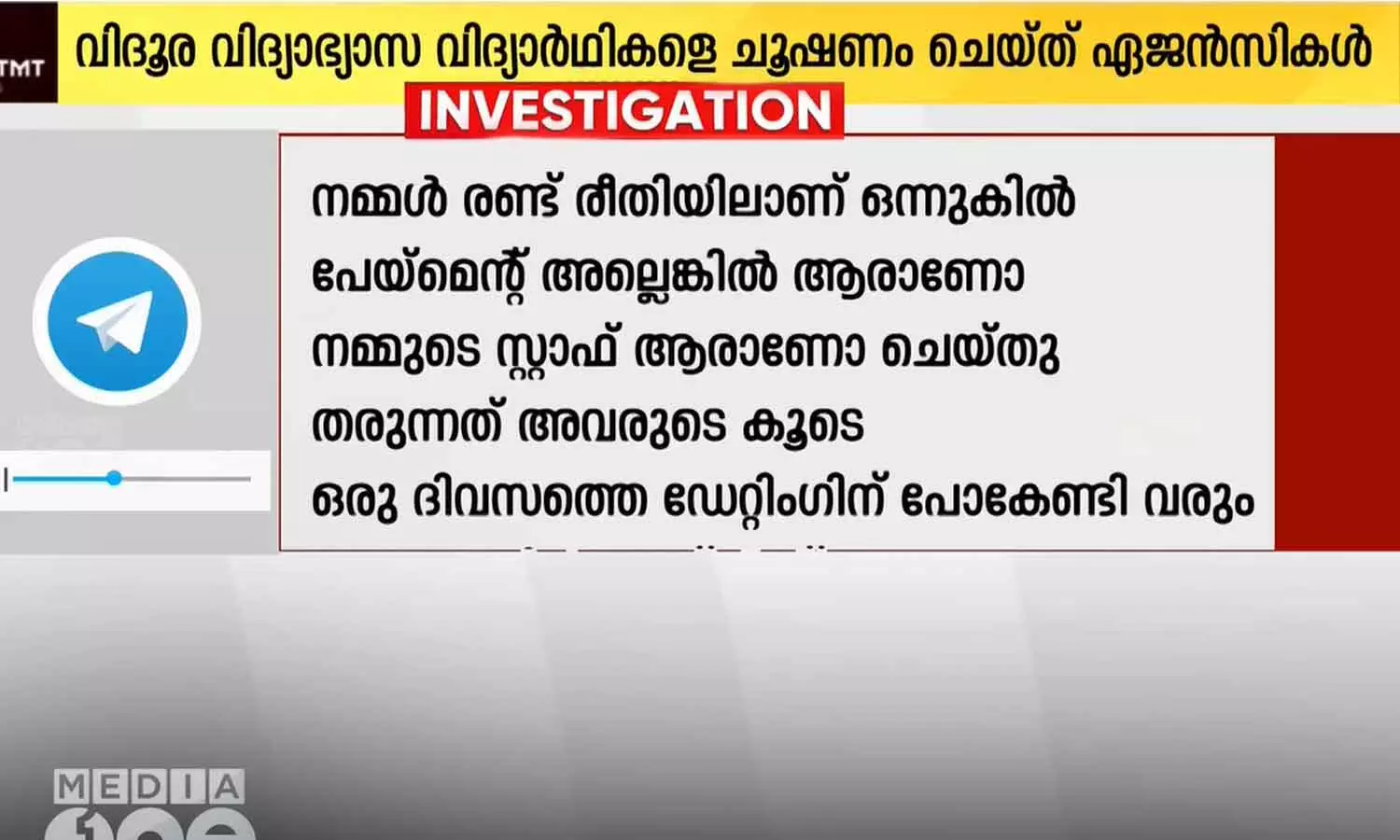 കോഴിക്കോട്: വിദൂര വിദ്യാഭ്യാസ കോഴ്സുകളിൽ പരീക്ഷ എഴുതാതെ തന്നെ വിജയിക്കാമെന്ന് വാഗ്ദാനം നല്കി ഏജൻസികൾ. പെൺകുട്ടികളാണെങ്കിൽ ഡേറ്റിങ്ങും ആൺകുട്ടികൾക്ക് കാശും നല്കിയാൽ പരീക്ഷ എഴുതാതെ തന്നെ കോഴ്സ് പാസാക്കിതരാമെന്നാണ് വാഗ്ദാനം. കോഴ്സുകൾക്ക് പ്രൊജക്ടും അസൈൻമെന്റും ചെയ്തുകൊടുക്കുന്ന ഏജൻസികളാണ് ലൈംഗിക ചൂഷണം നടത്തുന്നത്. ചൂഷണത്തിന് ശ്രമിച്ചവരുടെ ശബ്ദ സന്ദേശം മീഡിയവണിന് ലഭിച്ചു.