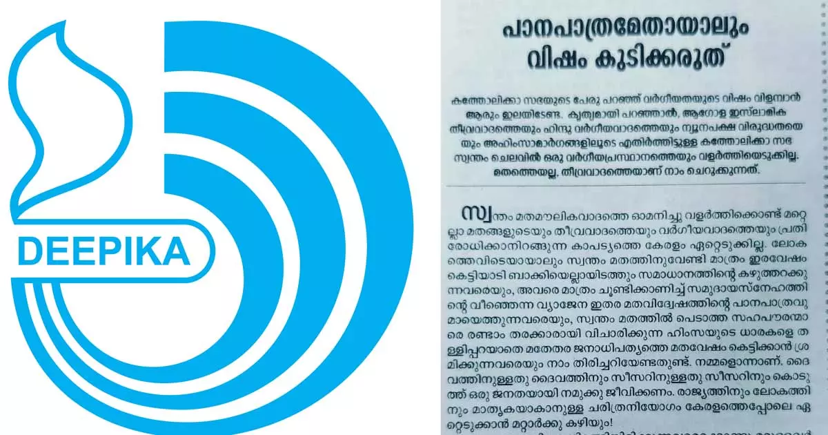 കത്തോലിക്കാ സഭയുടെ പേരു പറഞ്ഞ് വർഗീയതയുടെ വിഷം വിളമ്പാൻ ആരും ഇലയിടേണ്ട; വിമര്ശനവുമായി ദീപിക മുഖപ്രസംഗം