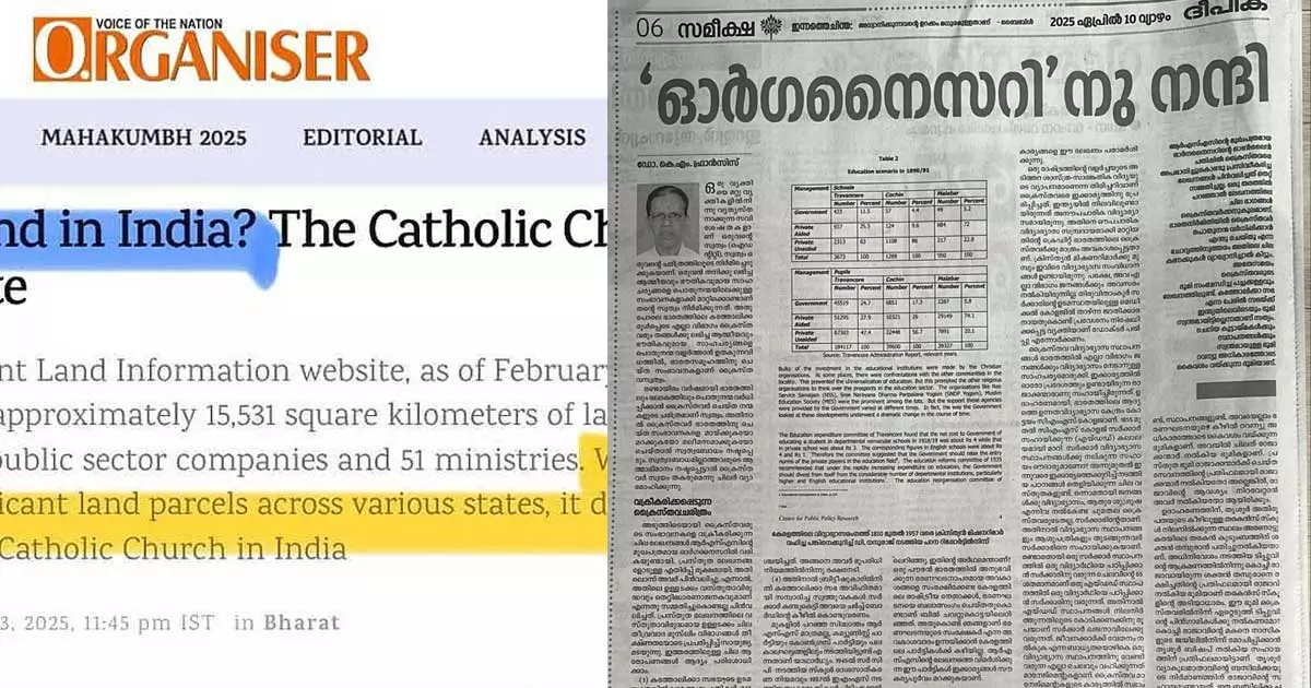 'ലേഖനം ക്രൈസ്തവരുടെ സംഭാവനകളെ വക്രീകരിക്കുന്നത്'; ഓര്ഗനൈസറിന് മറുപടിയുമായി ദീപിക