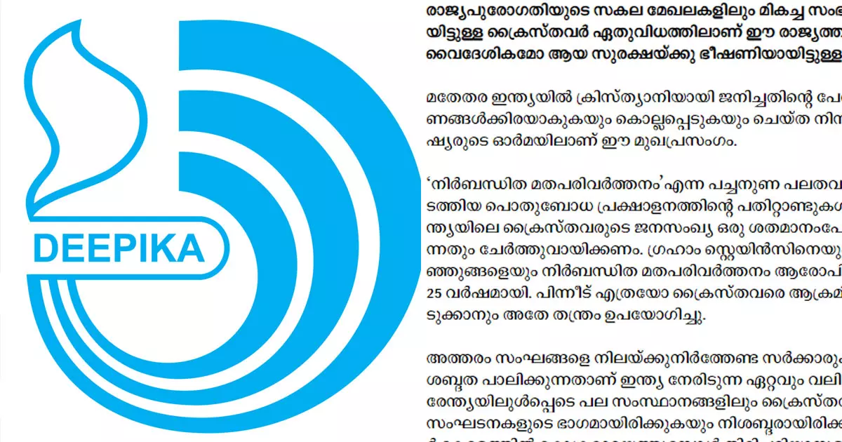 ക്രൈസ്തവരെ ദ്രോഹിക്കുന്നവര് കേരളത്തില് രക്ഷകരാകുമ്പോള് തിരിച്ചറിയാനുള്ള സാക്ഷരത ന്യൂനപക്ഷങ്ങള്ക്കുണ്ട്; ദീപികയുടെ മുഖപ്രസംഗം