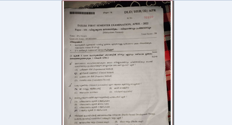 ഡി.എല്.എഡ് പരീക്ഷക്ക് കഴിഞ്ഞ വര്ഷത്തെ ചോദ്യപേപ്പര് ആവര്ത്തിച്ചതായി പരാതി