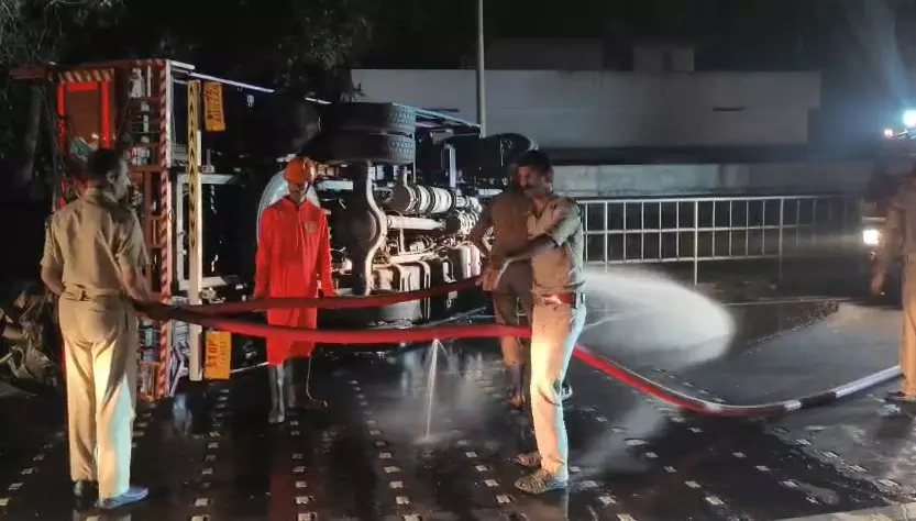 അകത്ത് കുടുങ്ങിപ്പോയ വയനാട് സ്വദേശിയായ ലോറി ഡ്രൈവർ അഖിൽ കൃഷ്ണയെ ലോറി വെട്ടിപ്പൊളിച്ചാണ് പുറത്തെടുത്തത്. കോഴിക്കോട് മെഡിക്കൽ കോളജിലേക്ക് കൊണ്ടുപോയെങ്കിലും ജീവൻ രക്ഷിക്കാനായില്ല. കാർ യാത്രികൻ നിസാര പരിക്കുകളോടെ രക്ഷപെട്ടു. രാത്രിയിൽ സ്ഥലത്തെ ട്രാഫിക് സിഗ്നലുകൾ പ്രവർത്തിക്കാത്തതിനാൽ ഇവിടെ അപകടങ്ങൾ പതിവാണെന്ന് നാട്ടുകാർ പറയുന്നു
