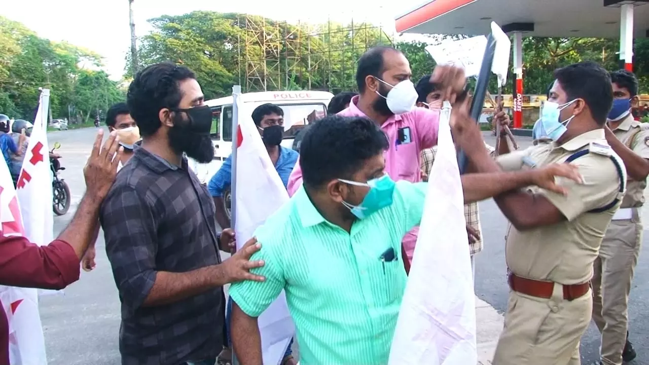 പെട്രോള് പമ്പിന് മുന്നില് സെഞ്ച്വറിയടിച്ച് പ്രതിഷേധിക്കാനെത്തിയ ഡി.വൈ.എഫ്.ഐ പ്രവര്ത്തകരെ പൊലീസ് തടഞ്ഞു; സംഘര്ഷം