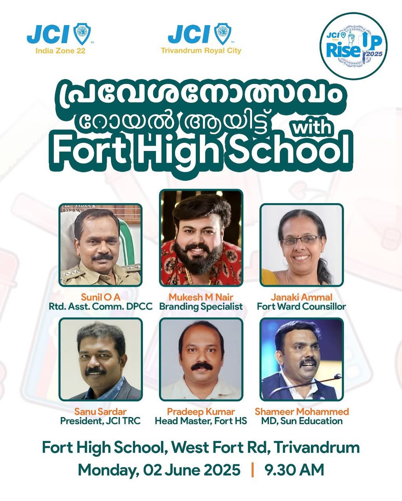 റിട്ടയർഡ് അസിസ്റ്റൻ്റ് കമ്മീഷണർ സുനിൽ ഒ.എ, ഫോർട്ട് വാർഡ് കൗൺസിലർ ജാനകി അമ്മാളും ഫോർട്ട് ഹൈസ്കൂളിൽ നടന്ന പ്രവേശനോത്സവത്തിൽ പങ്കെടുത്തിരുന്നു.