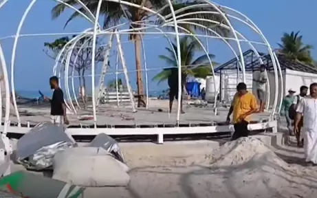 കോഴിക്കോട്: ലക്ഷദ്വീപിലെ തിണ്ണകരയിൽ കോടതി നിർദേശം ലംഘിച്ച് വൻകിട ടൂറിസം പദ്ധതിയുമായി അധികൃതർ മുന്നോട്ട്. പ്രദേശവാസികളുടെ ഭൂമി കയ്യേറിയതിനു പുറമെ താത്കാലിക നമസ്കാരപ്പള്ളിയും പൊളിച്ചുമാറ്റി. ഗുജറാത്തിലെ പ്രവേഗ് കമ്പനിയാണ് ദ്വീപിൽ ടെന്റ് സിറ്റി എന്ന പേരിൽ റിസോർട്ട് നിർമിക്കുന്നത്. പ്രതിഷേധവുമായി ദ്വീപ് നിവാസികളെത്തി. കോൺഗ്രസ് പ്രതിനിധി സംഘം തിണ്ണകര സന്ദർശിച്ചു.