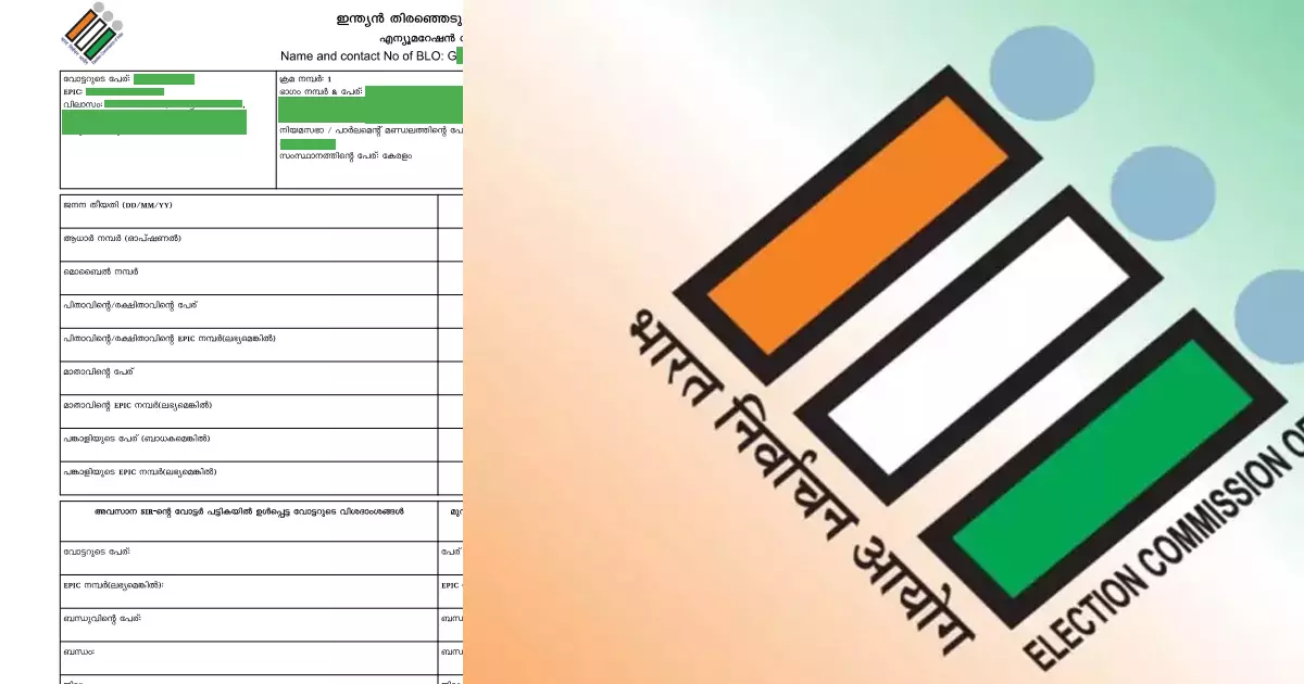 |ബിഎൽഒ നൽകുന്ന അപേക്ഷയും എന്യുമറേഷൻ ഫോമും പൂരിപ്പിച്ച് ഒപ്പിട്ടു നൽകണം