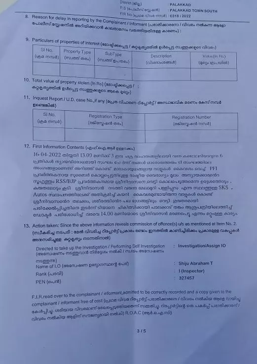 |പോപ്പുലർ ഫ്രണ്ട് നേതാവ് സുബൈറിന്റെ കൊലപാതകത്തിലുള്ള പ്രതികാരമെന്നും റിപ്പോര്ട്ട്