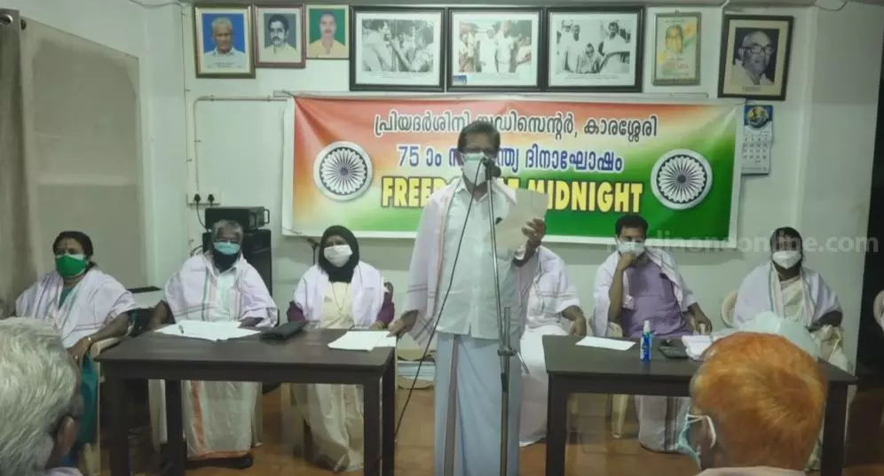 മോദിയുടെ വിഭജന ദിനാഹ്വാനത്തില് പ്രതിഷേധം: അര്ധരാത്രി സ്വാതന്ത്ര്യ ദിനം ആഘോഷിച്ച് പ്രിയദർശിനി സ്റ്റഡി സെന്റർ