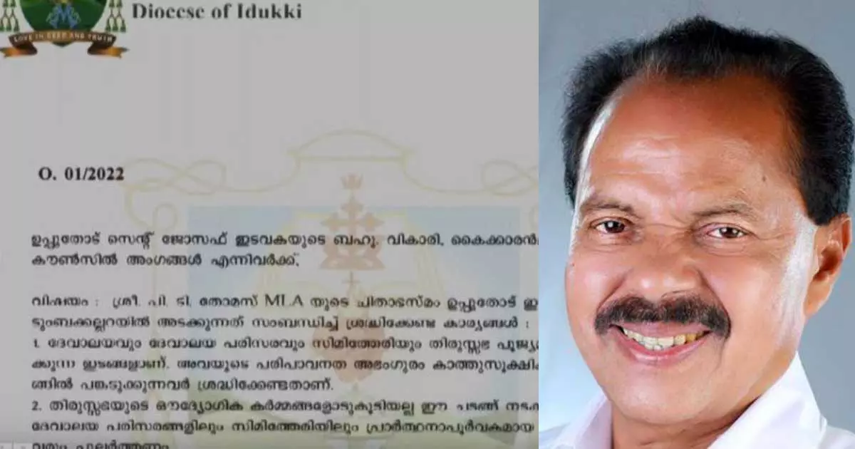 പി.ടി തോമസിന്റെ ചിതാഭസ്മം അമ്മയുടെ കല്ലറയിൽ നിക്ഷേപിക്കുന്നതിന് ഇടുക്കി രൂപതയുടെ മാർഗനിർദേശം