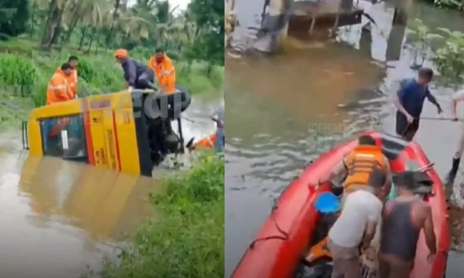 മഴക്കെടുതി രൂക്ഷം; പാലക്കാട് സ്കൂൾ ബസ് തോട്ടിലേക്ക് മറിഞ്ഞു, കോട്ടയത്ത് കർഷകൻ മുങ്ങിമരിച്ചു