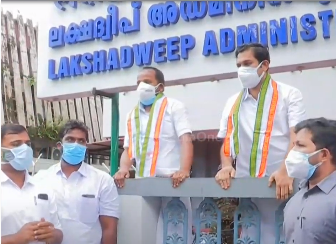 |എം.പിമാരായ ഹൈബി ഈഡനും ടി.എൻ പ്രതാപനുമാണ് ലക്ഷദ്വീപ് അഡ്മിനിസ്ട്രേറ്റീവ് ഓഫീസിന് മുന്നില് പ്രതിഷേധിച്ചത്.