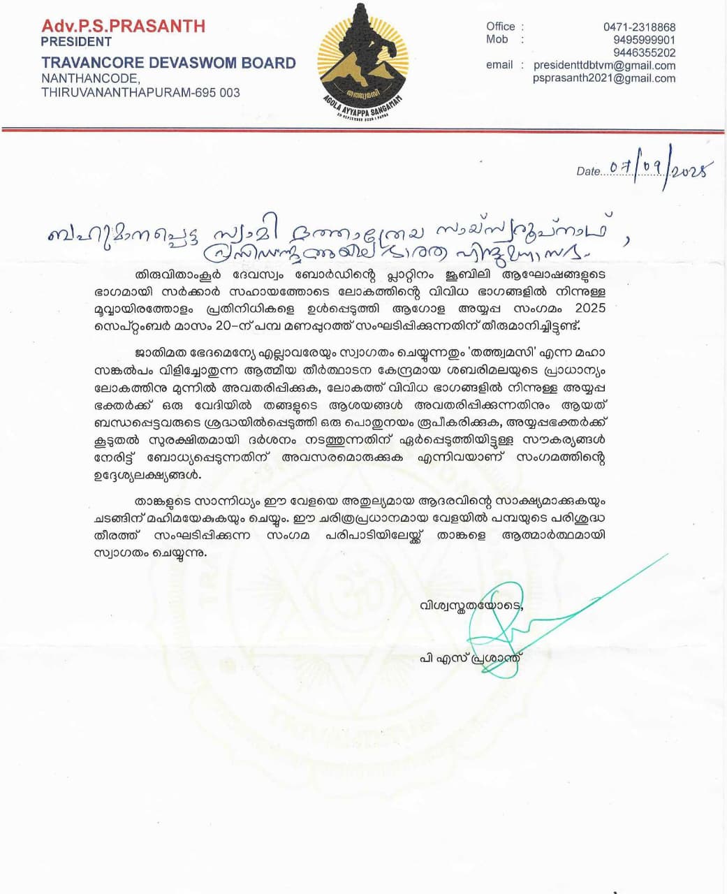 അയ്യപ്പസംഗമത്തിൽ ഹിന്ദു മഹാസഭക്കും ക്ഷണം; പ്രതിനിധിയായി സ്വാമി ദത്താത്രേയസായി സ്വരൂപ്നാഥ് പങ്കെടുത്തു