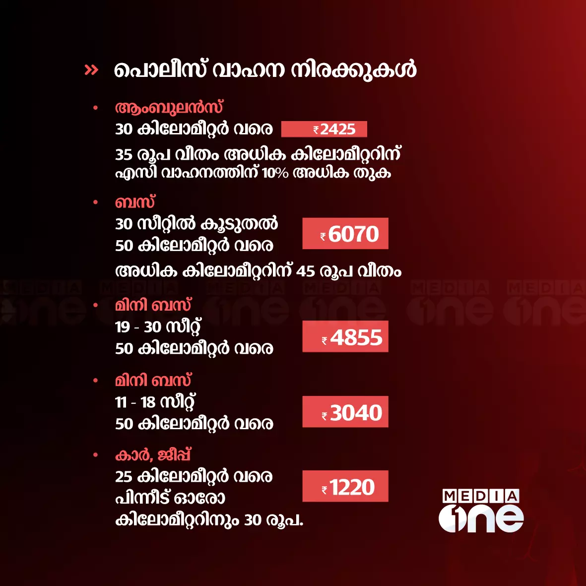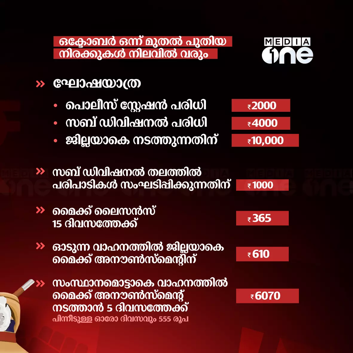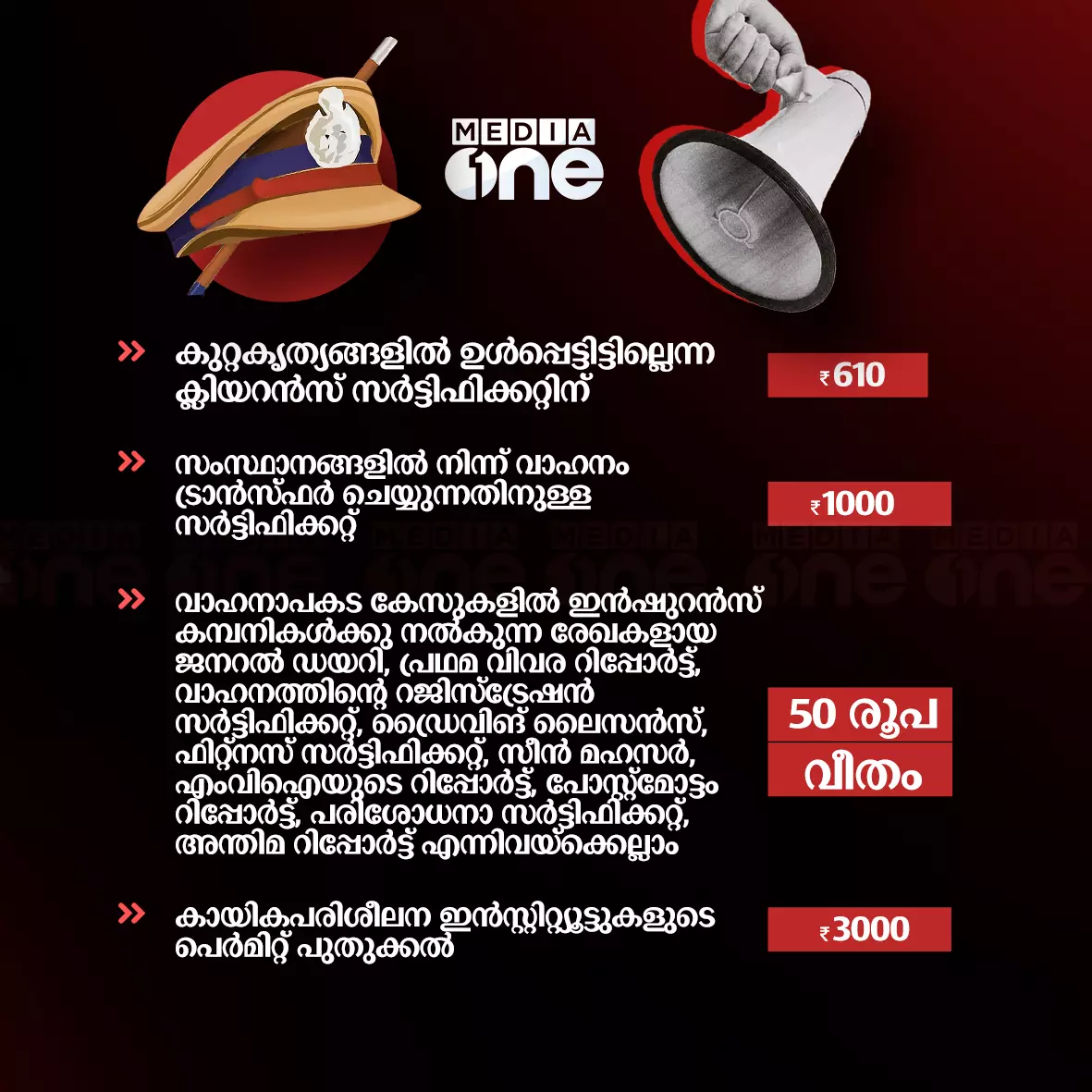 പ്രകടനം, ഘോഷയാത്ര പൊലീസ് ഫീസും സേവന- വാടക നിരക്കിലെ വർധനയും; അറിയാം പുതിയ നിരക്കുകൾ