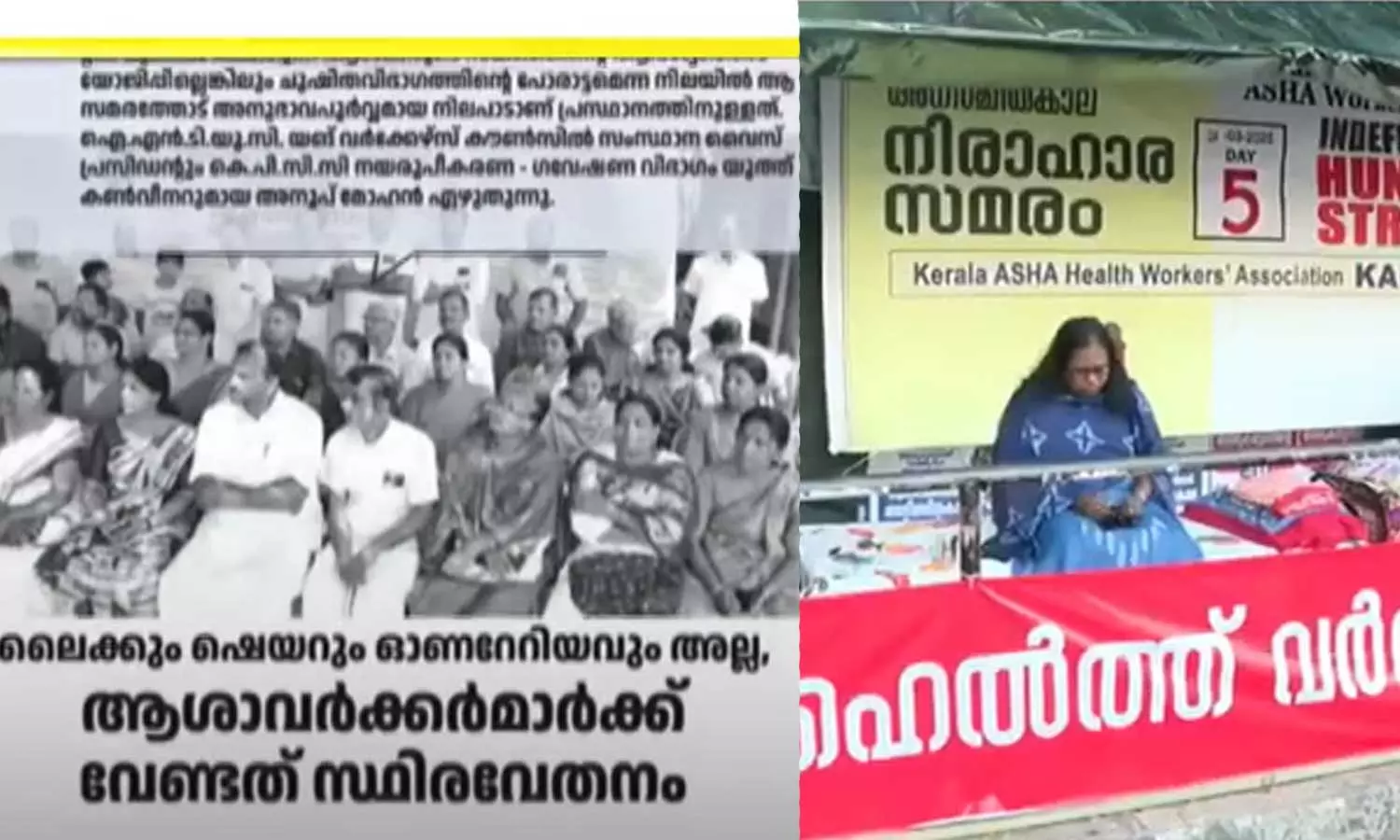 'ലൈക്കും ഷെയറും ഓണറേറിയവും അല്ല, ആശമാർക്ക് വേണ്ടത് സ്ഥിര വേതനം' എന്ന തലക്കെട്ടിലാണ് ഐഎൻടിയുസി മുഖമാസികയായ 'ഇന്ത്യൻ തൊഴിലാളി'യിലെ ലേഖനം. കെപിസിസി നയരൂപീകരണ - ഗവേഷണ വിഭാഗം യൂത്ത് കൺവീനർ അനൂപ് മോഹന്റെ ലേഖനത്തിൽ രാഷ്ട്രീയക്കാരും സിനിമാ താരങ്ങളും സമരത്തെ സെൽഫി പോയിന്റ് ആക്കുന്നുവെന്ന വിമർശനവും ഉണ്ട്. എന്നാൽ ഐഎൻടിയുസിയുടെ നിലപാടിൽ പ്രസക്തിയില്ലന്നും അവർ നിലപാട് തിരുത്തണമെന്നും യുഡിഎഫ് കൺവീനർ എം.എം ഹസ്സൻ ആവശ്യപ്പെട്ടു.