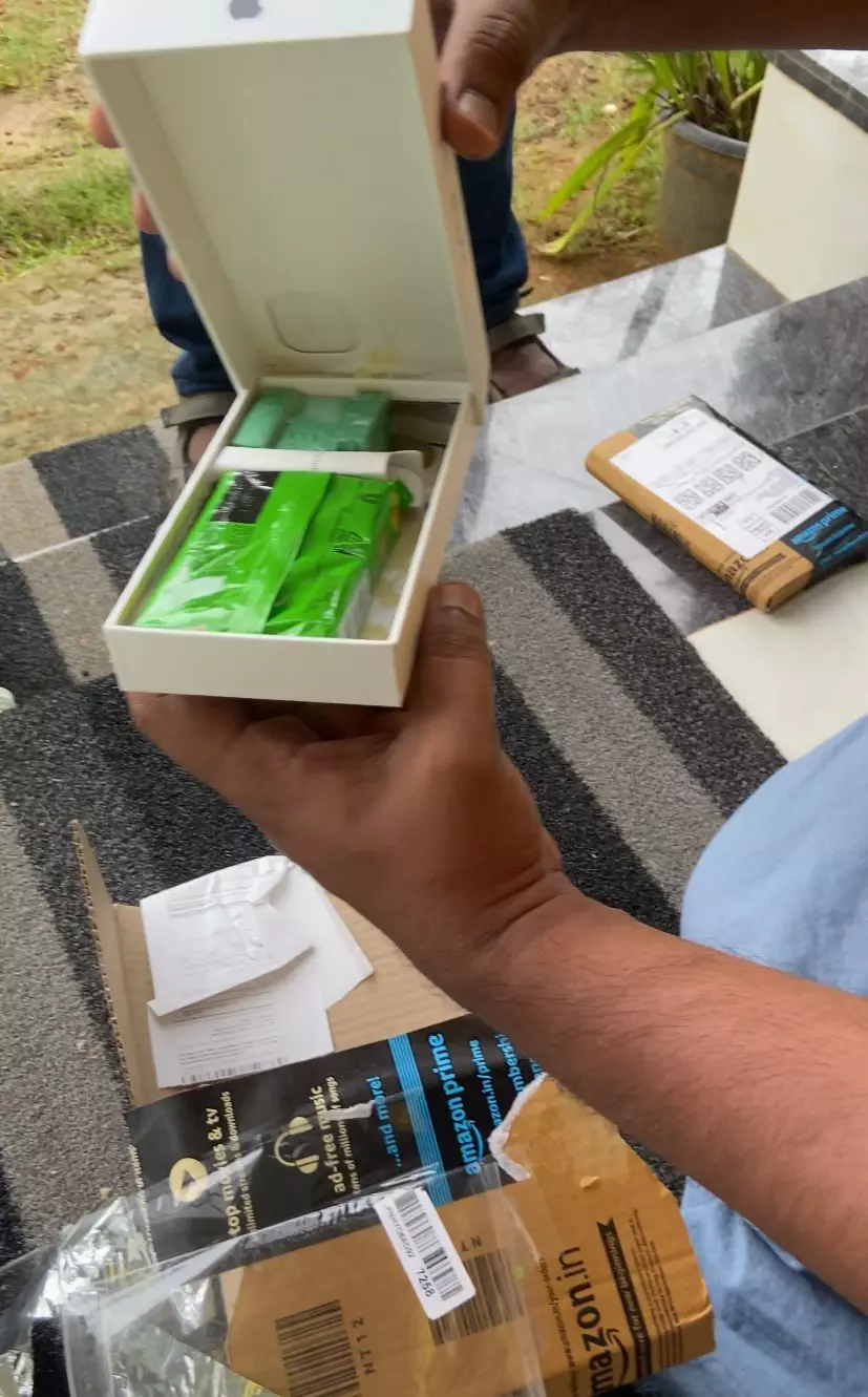 ഒക്ടോബർ 12നാണ് നൂറുൽ അമീൻ ഐഫോൺ 12 ക്രെഡിറ്റ് കാർഡ് വഴി ഇ.എം.ഐ. ആയി ആമസോണിൽ ഓർഡർ ചെയ്യുന്നത്. ആമസോണിന്റെ ട്രസ്റ്റഡ് സെല്ലറായ അപ്പാരിയോയിൽ നിന്നാണ് ഫോൺ വാങ്ങിയത്. ഹൈദരാബാദിൽ നിന്ന് ഡെസ്പാച്ചായ ഫോൺ പിന്നീട് സേലത്ത് ഒരു ദിവസം നിന്നു. ഇതിൽ സംശയം തോന്നിയതിനാലാണ് ഫോൺ ഡെലിവറി ബോയുടെ മുന്നിൽ വെച്ചുതന്നെ പെട്ടി തുറന്നതെന്ന് നൂറുൽ അമീൻ പറയുന്നു.