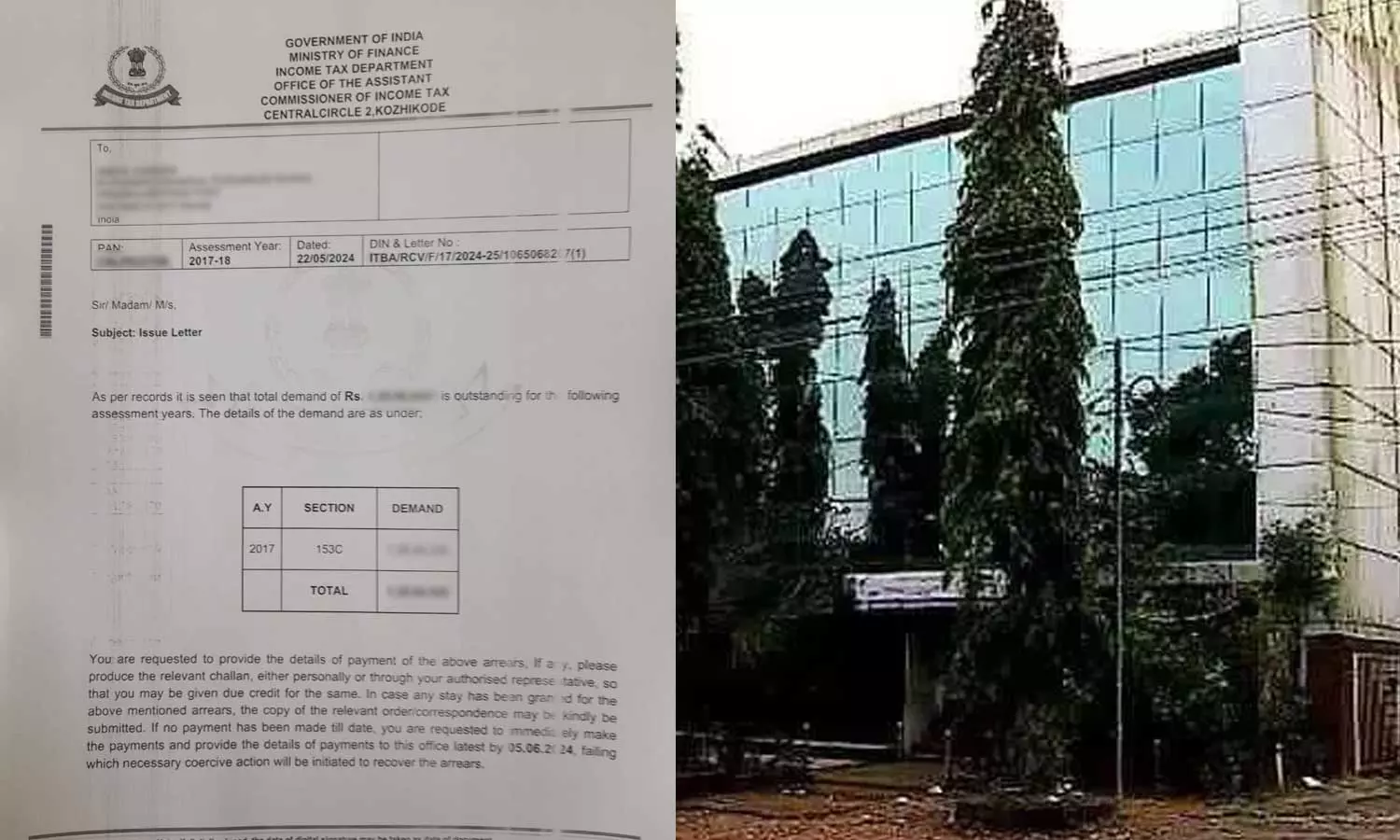 |നികുതിയും കുടിശ്ശികയും ഉടൻ അടച്ചില്ലെങ്കിൽ സ്വത്ത് കണ്ടുകെട്ടുമെന്നും ആദായനികുതി വകുപ്പ് അറിയിച്ചു.