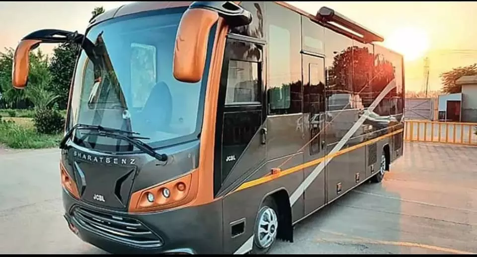 വാഹനത്തിനകത്ത് നാലു ലക്ഷ്വറി സീറ്റുകളാണുള്ളത്. ബെഡ് പോലെ ക്രമീകരിക്കാവുന്ന സീറ്റിൽ കിടക്കാനും വിശാലമായി ഇരിക്കാനും കഴിയും. എ.സി, ടി.വി, ഡ്രൈവറുമായി സംസാരിക്കാൻ ഇൻറർകോം എന്നിവയുണ്ട്. മുകളിലും ടി.വി സ്ഥാപിച്ച മുൻവശത്തും മികച്ച ലഗേജ് സ്പേസുണ്ട്. വാഹനത്തിനടിയിലായി ഇതിലേറെ ലഗേജ് സൂക്ഷിക്കാനാകും. ഫ്രിഡ്ജ്, ഇലക്ട്രിക് കെറ്റിൽ, മൈക്രോവേവ്, വാഷ്ബേസിൻ തുടങ്ങിയവ ഡ്രോയിങ് റൂമിനകത്തുണ്ട്. യൂറോപ്യൻ ക്ലോസറ്റും ഷവർ ഏരിയയുമുള്ള ബാത്ത് റൂമും വാഹനത്തിനകത്തുണ്ട്.