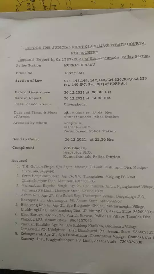 കിഴക്കമ്പലം ആക്രമണം: 25 പേരെ റിമാന്റ് ചെയ്തു, പ്രതികള് മണിപ്പൂര്, ജാര്ഖണ്ഡ്, അസം സ്വദേശികള്