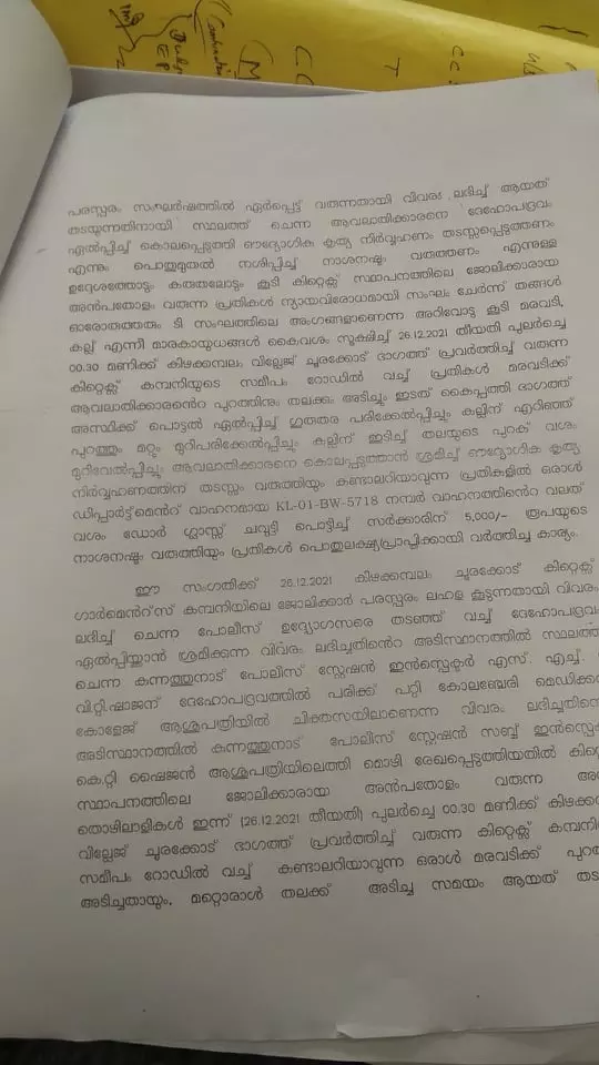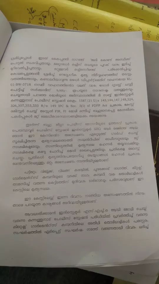 കൊലപ്പെടുത്തണമെന്ന ഉദ്ദേശ്യത്തോടെയാണ് പൊലീസിനെ തൊഴിലാളികൾ ആക്രമിച്ചതെന്നാണ് റിമാൻഡ് റിപ്പോർട്ട്. 11 വകുപ്പുകളും പ്രതികൾക്കെതിരെ ചുമത്തിയിട്ടുണ്ട്. പരിക്കേറ്റ പോലീസുകാരുടെ മൊഴിയുടെ അടിസ്ഥാനത്തിലാണ് വകുപ്പുകൾ ചുമത്തിയത്. മാരകായുധങ്ങൾ കൈവശം സൂക്ഷിച്ചു. പരിക്കേറ്റ പൊലീസുകാരെ ആശുപത്രിയിലേക്ക് കൊണ്ടുപോയ വാഹനവും പൊലീസ് ആക്രമിച്ചുവെന്നും റിമാൻഡ് റിപ്പോർട്ടിൽ പറയുന്നു.