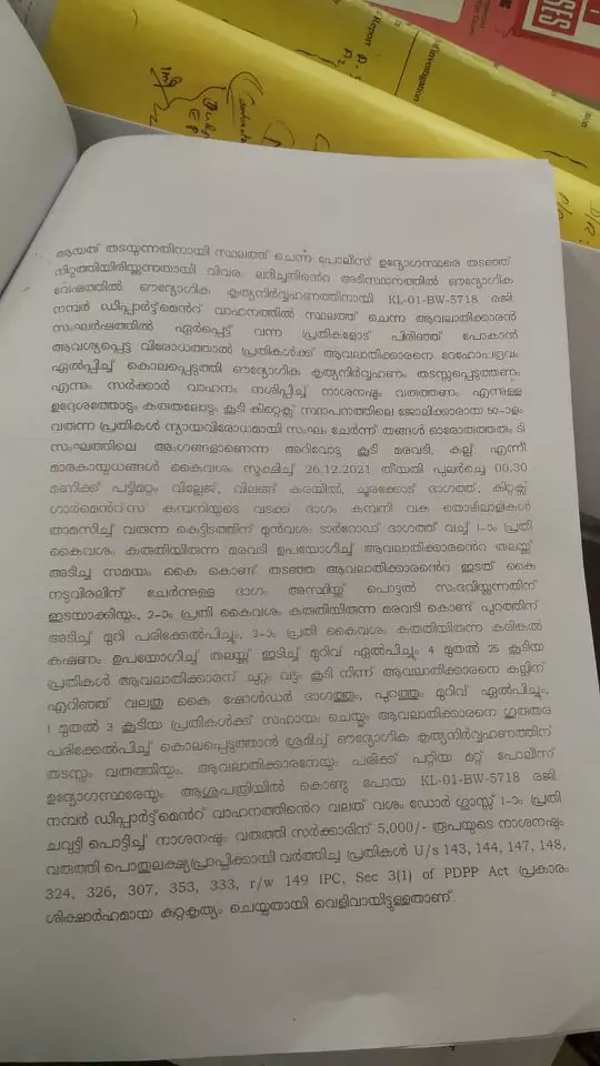 പ്രതികൾ സ്റ്റേഷൻ ജീപ്പിൻറെ താക്കോൽ ബലമായി ഊരിയെടുത്തെന്നും അക്രമികളിൽ ഒരാൾ എസ്.ഐ സാജൻറെ തലക്ക് കല്ല് കൊണ്ട് ഇടിച്ചതായും റിപ്പോർട്ടിൽ പറയുന്നു. 12 ലക്ഷത്തിലധികം രൂപയുടെ നഷ്ടം സർക്കാറിനുണ്ടായതായാണ് പ്രാഥമിക അന്വേഷണത്തിൽ കണ്ടെത്തിയത്. കസ്റ്റഡിയിലെടുത്ത 156 പേരുടെയും അറസ്റ്റ് രേഖപ്പെടുത്തിയിരുന്നു.