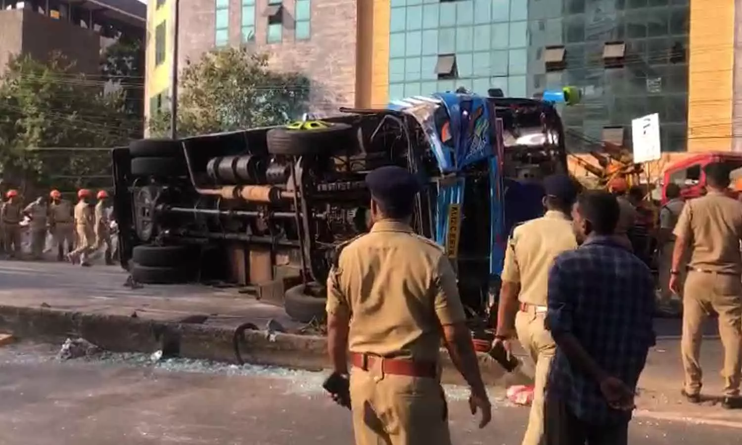 കോഴിക്കോട് അരയിടത്ത് പാലത്ത് സ്വകാര്യ ബസ് മറിഞ്ഞു; നിരവധിപേർക്ക് പരിക്ക്