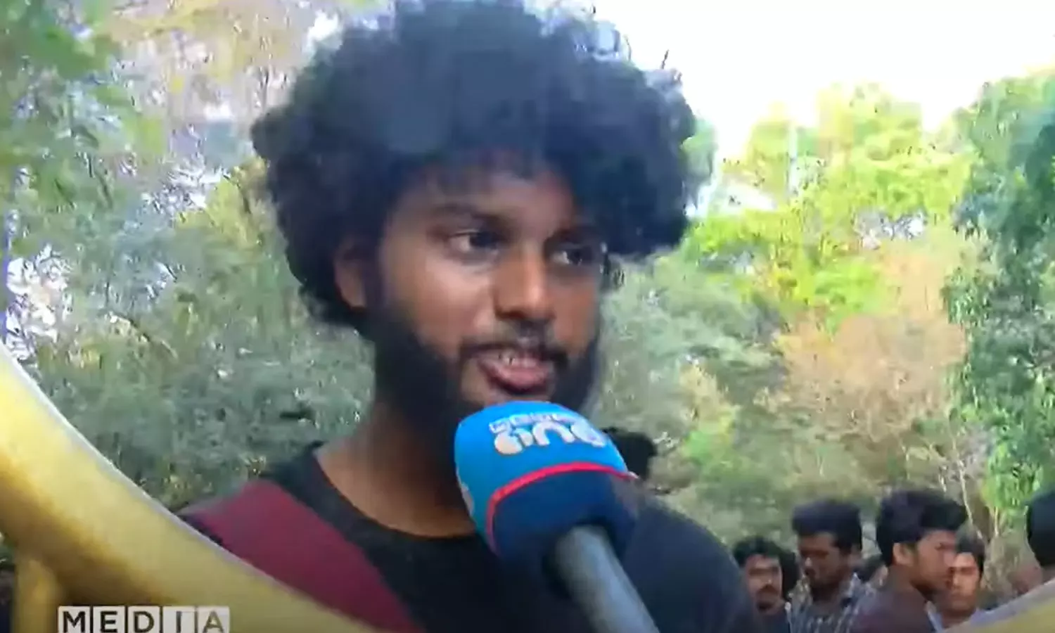 |രാമക്ഷേത്ര പ്രാണപ്രതിഷ്ഠാ ദിനത്തിൽ കാമ്പസിൽ കാവി ഇന്ത്യ വരച്ചതിനെതിരെ പ്രതിഷേധിച്ചതിനാണ് വൈശാഖിനെ ഒരു വർഷത്തേക്ക് സസ്പെൻഡ് ചെയ്തത്.