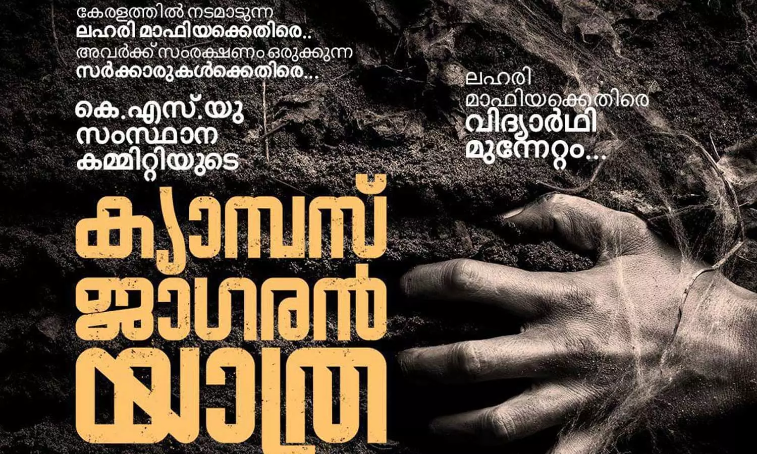 ലഹരി വിരുദ്ധ ബോധവത്കരണം: KSU ക്യാമ്പസ് ജാഗരൻ യാത്രക്ക് ചൊവ്വാഴ്ച തുടക്കം