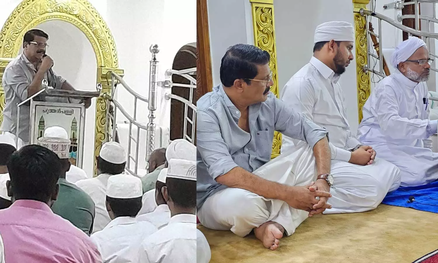 പുതിയ വഖഫ് ബോർഡ് ചെയർമാൻ അഡ്വ. മുഹമ്മദ് സക്കീർ തന്റെ മഹല്ലായ പെരുമ്പടപ്പ് പുത്തൻപള്ളിയിൽ ജുമുഅക്ക് ശേഷം വിശ്വാസികളെ അഭിസംബോധന ചെയ്യുന്ന ചിത്രമാണ് ഇമേജിൽ.
