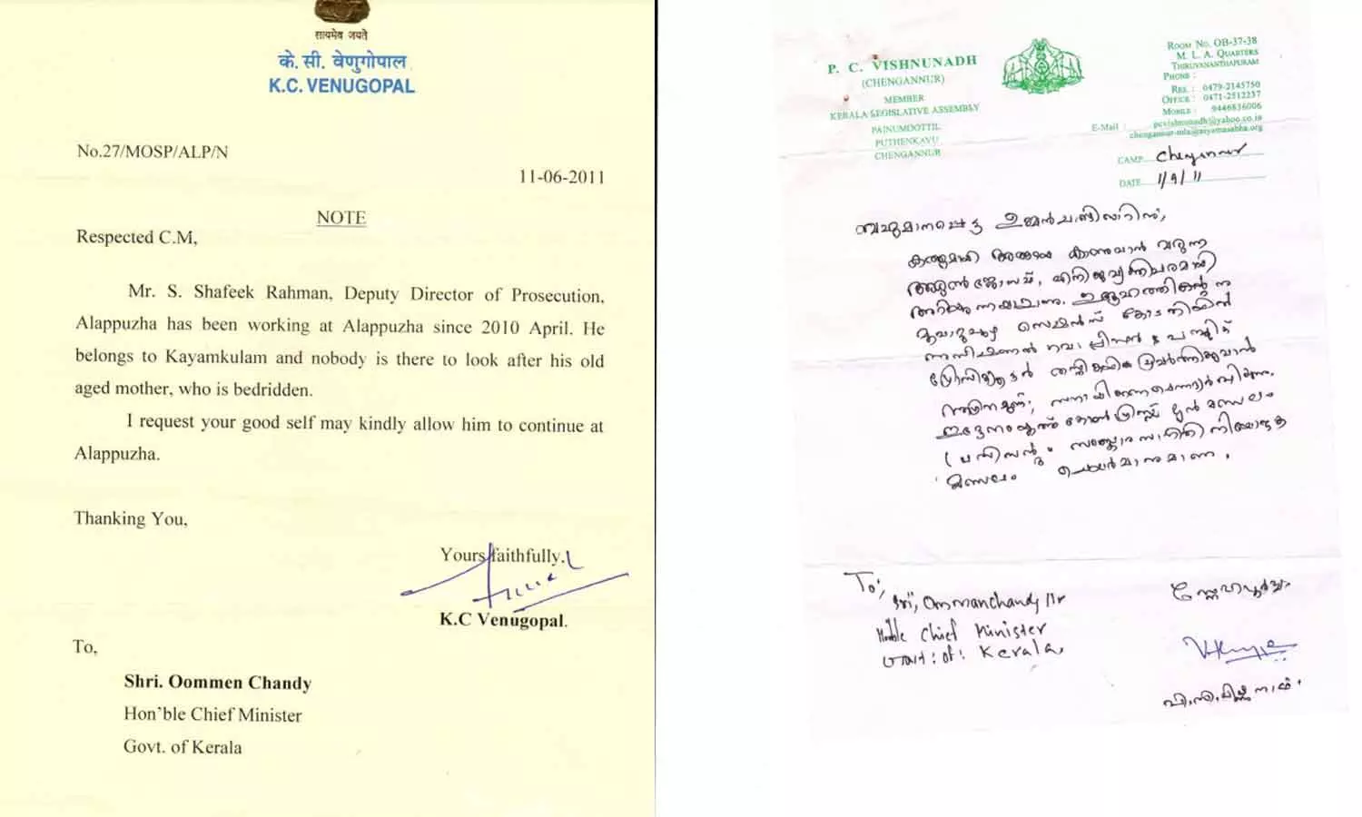 യു.ഡി.എഫ് കാലത്തും ശിപാർശ കത്ത്; മന്ത്രിമാരുടെയും എം.എൽ.എമാരുടെയും കത്ത് പുറത്ത്
