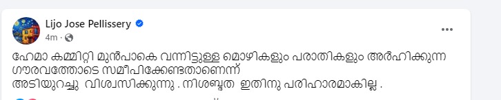 സോഷ്യൽ മീഡിയയിൽ പങ്കുവെച്ച കുറിപ്പിലാണ് ലിജോ ജോസ് മൊഴി നൽകിയവർക്ക് പിന്തുണ നൽകിയിരിക്കുന്നത്