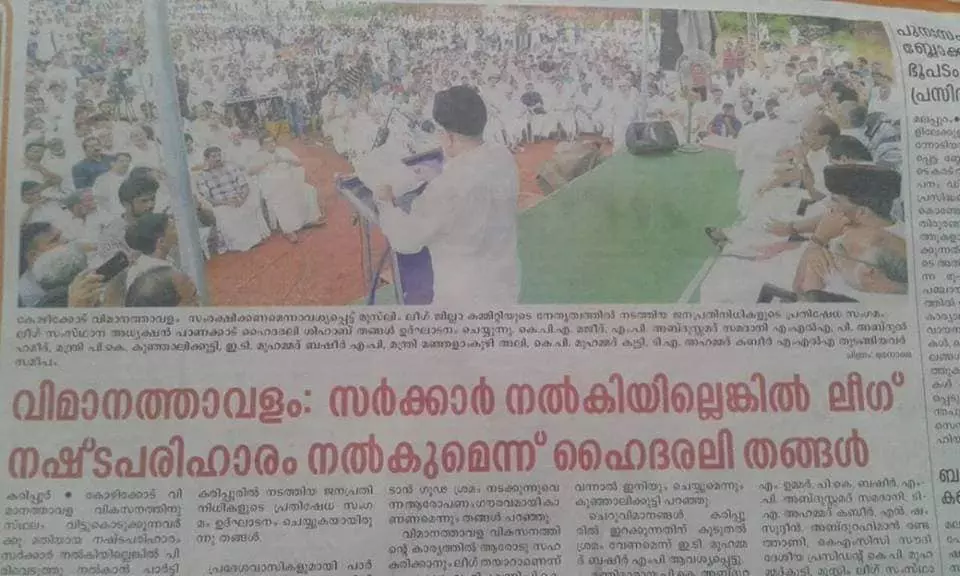 കരിപ്പൂര് വിമാനത്താവള റണ്വേ വികസനമാണ് മറ്റൊരു മലപ്പുറം മോഡല്. അതിന് അഞ്ച് കോടിയോളം രൂപയാണ് ജില്ലയില് നിന്ന് പിരിച്ചെടുത്തത്. ബാക്കി ഹഡ്ക്കോയില് നിന്നും കടമെടുത്തു. അത് തിരിച്ചടക്കാന് വിമാനത്താവളത്തില് അധിക ചാര്ജുകള് ഈടാക്കി. പോരാത്തതിന് ഇനിയും സര്ക്കാര് ഫണ്ടനുവദിച്ചില്ലെങ്കില് മുസ്ലിം ലീഗ് പിരിവെടുത്ത് നല്കുമെന്ന് പാണക്കാട് ഹൈദരലി തങ്ങളുടെ പ്രഖ്യാപനവും വന്നു.