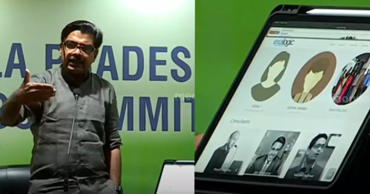|വീണാ വിജയന്റെ ഐടി കമ്പനിയായ എക്സാലോജിക്കിന്റെ വെബ്സൈറ്റില് ജെയ്ക് ബാലകുമാറിനെക്കുറിച്ച് നേരത്തെ ഉള്പ്പെടുത്തിയിരുന്ന ഭാഗം മാത്യു കുഴല്നാടന് വാർത്താസമ്മേളനത്തില് പ്രദർശിപ്പിച്ചു