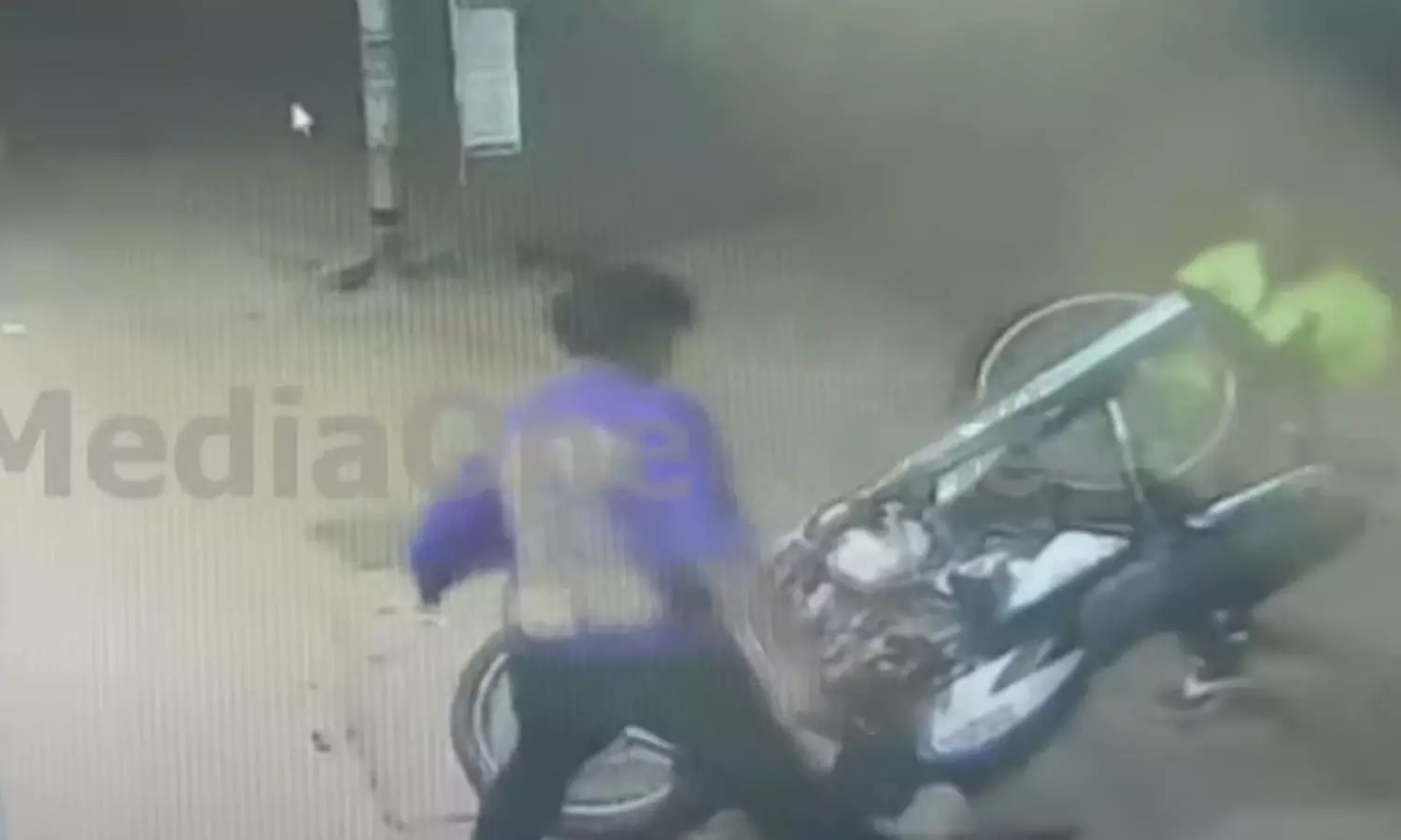 മെഡിക്കൽ ഷോപ്പിന്റെ മുന്നിൽ നിർത്തിയിട്ട ബൈക്കും തകർത്തു