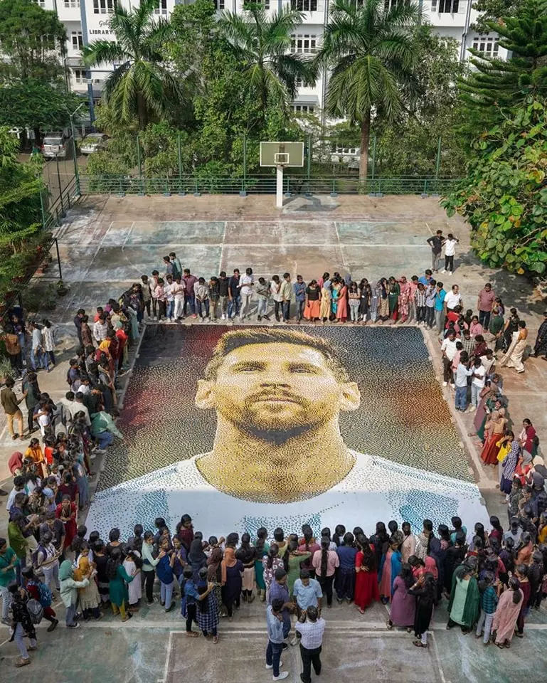 |ലയണൽ മെസ്സിയുടെ ചാർട്ട് പേപ്പറിൽ വരച്ച കൂറ്റൻ ചിത്രം അത്ഭുതവും വിസ്മയവും സൃഷ്ടിക്കുകയാണ്